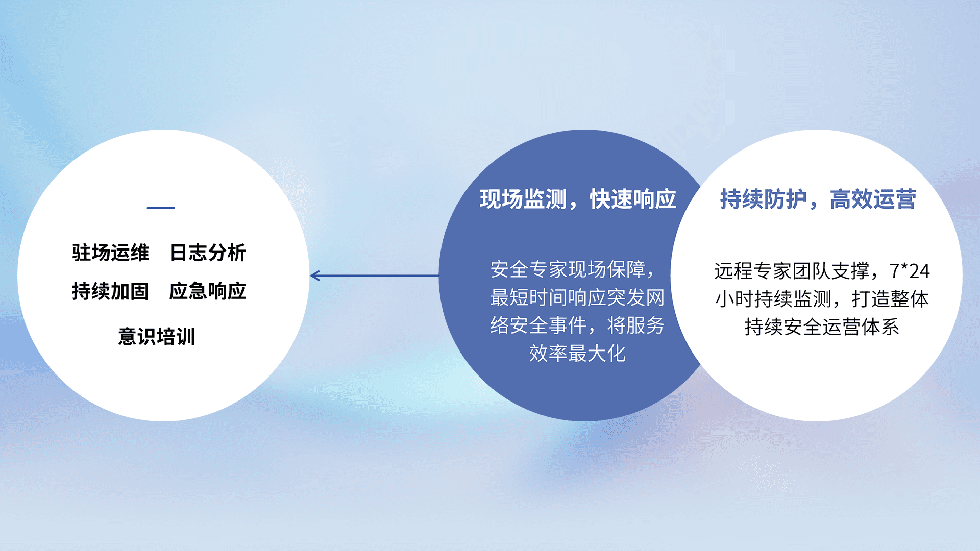 针对客户行业特性,,提供专属的一站式安全管理服务,,帮助客户全面感知网络空间威胁,,,,通过安全专家的线上、、线下防护支持,,实现风险闭环,,,,将安全保障常态化,,,为客户打造常态化安全运维运营服务。。。。